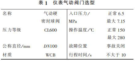 1) 飽和蒸汽流量計出口管線總閥泄漏無法在線處理,導(dǎo)致氣化爐停車。在入氣化爐根部增加 2 臺儀表氣動閥門,要求每月進(jìn)行 2 次開、關(guān),防止閥門出現(xiàn)卡塞現(xiàn)象。 新增 2 臺儀表氣動閥門相關(guān)參數(shù)見表 1。