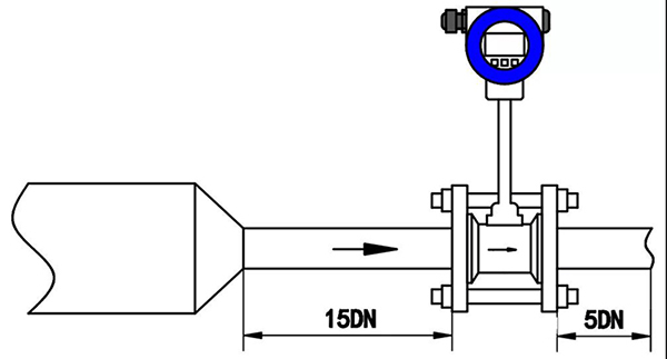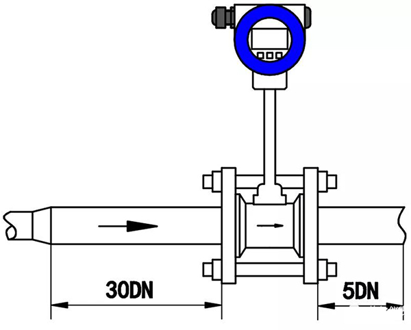 2、調(diào)節(jié)閥盡可能不安裝在渦街流量儀表的上游,而應(yīng)安裝在壓縮空氣流量計的下游10D處。