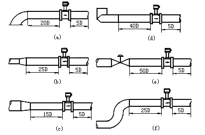 2)配管應(yīng)與傳感器同心,同軸度應(yīng)小于0.05D`。